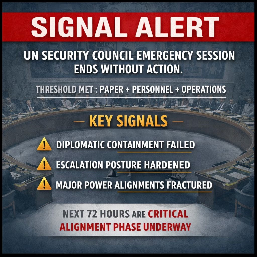 SIGNAL ALERT: UN SECURITY COUNCIL EMERGENCY SESSION ENDS WITHOUT ACTIONJack HopkinsFeb 28, 2026∙ Paid601526ShareSIGNAL ALERT:UN SECURITY COUNCIL EMERGENCY SESSION ENDS WITHOUT ACTIONContinue reading this post for free, courtesy of Jack Hopkins.Claim my free postOr purchase a paid subscription.Previous