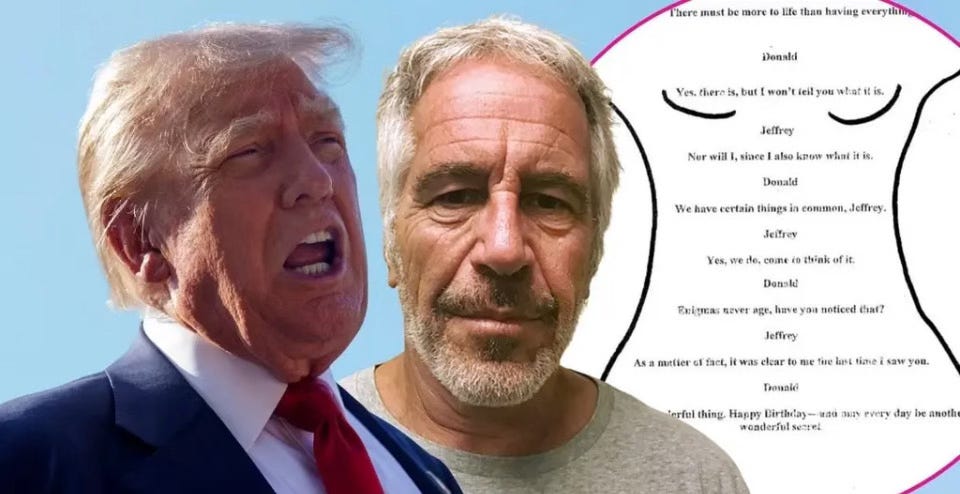 That’s what’s happening here. The birthday card is the glove. The distraction. The thing they want you to fight about while the true machinery of Epstein’s power stays out of sight.