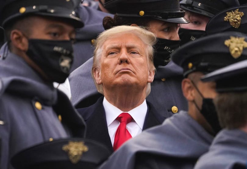 Every photo-op staged with soldiers behind him.