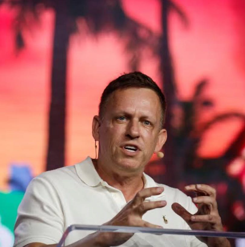 Thiel swallowed it whole. He believes the modern West is tearing itself apart because it’s lost its old scapegoats…and the vacuum is summoning a false unity…a global peace machine that will smother individuality in the name of safety.