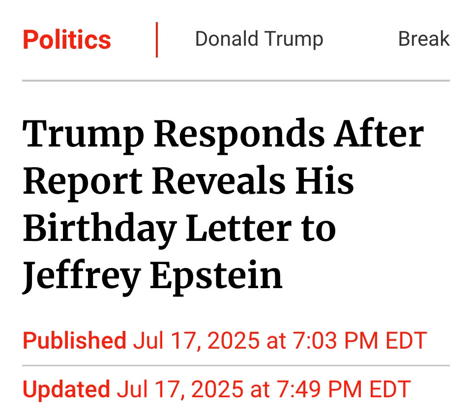 That’s why you’re going to see a coordinated defense…a public declaration that the WSJ letter story is a “hit piece,”that the media is lying, that the files were destroyed by the deep state, and that Trump is still the most “persecuted” man in America.