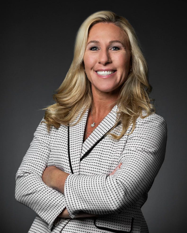 See, most folks think MTG is a clown…an embarrassment…a political accident who slipped through a congressional district like a kidney stone…and somehow got lodged in the national bloodstream.