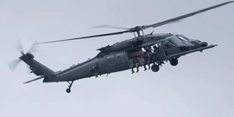 HH-60W Jolly Green II helicopter, like those involved in rescuing the downed airman in Iran.